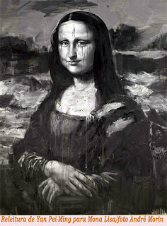 PARIS – FRANÇA - O Museu do Louvre apresenta desde a desta quinta-feira,19, a exposição O Funeral da Mona Lisa, do artista contemporâneo franco-chinês Yan Pei-Ming, e principal obra traz imagem de Mona Lisa com tinta escorrendo pelo rosto. Uma tela monumental em cinza e branca, composta por cinco telas com cerca de 3m de altura, cada, e um total de 17m de comprimento, apresenta a famosa imagem da Mona Lisa com uma tinta escorrendo pelo seu rosto e corpo, como se estivesse chorando e também ferida na testa. Ao lado da tela de Mona Lisa, que se encontra no centro da obra, crânios humanos espalhados. Já nas extremidades, o retrato do pai de Yan Pei-Ming, falecido recentemente, e do próprio artista que finge estar morto. Segundo o pintor "Todos os pintores expostos no Louvre estão mortos e por isso fiz meu auto-retrato fingindo que estou morto. É uma alusão à vida e à morte", diz o artista. A exposição faz parte da iniciativa do Museu do Louvre, adotada há alguns anos, de expor obras de artistas contemporâneos.